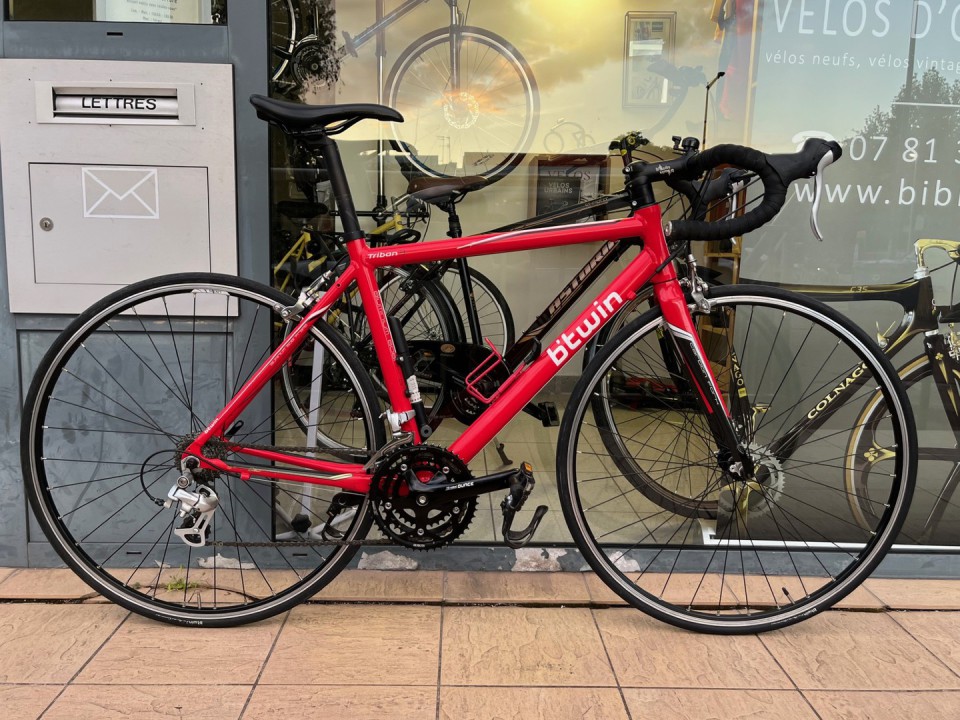 Vélo de course B'TWIN TRIBAN 3 - Taille M 54 - 3x8 vitesses - État visuel: 9/10 - Vélo de course, dans un état proche du neuf. Vélo léger en aluminium avec fourche carbone équipements Shimano. Avec son triple plateau vous passerez partout. Vélo léger et réactif, idéal pour s'initier au vélo de course - Prix: 320€ (220€ avec les aides Toulouse Métropole) + 10€ marquage vélo