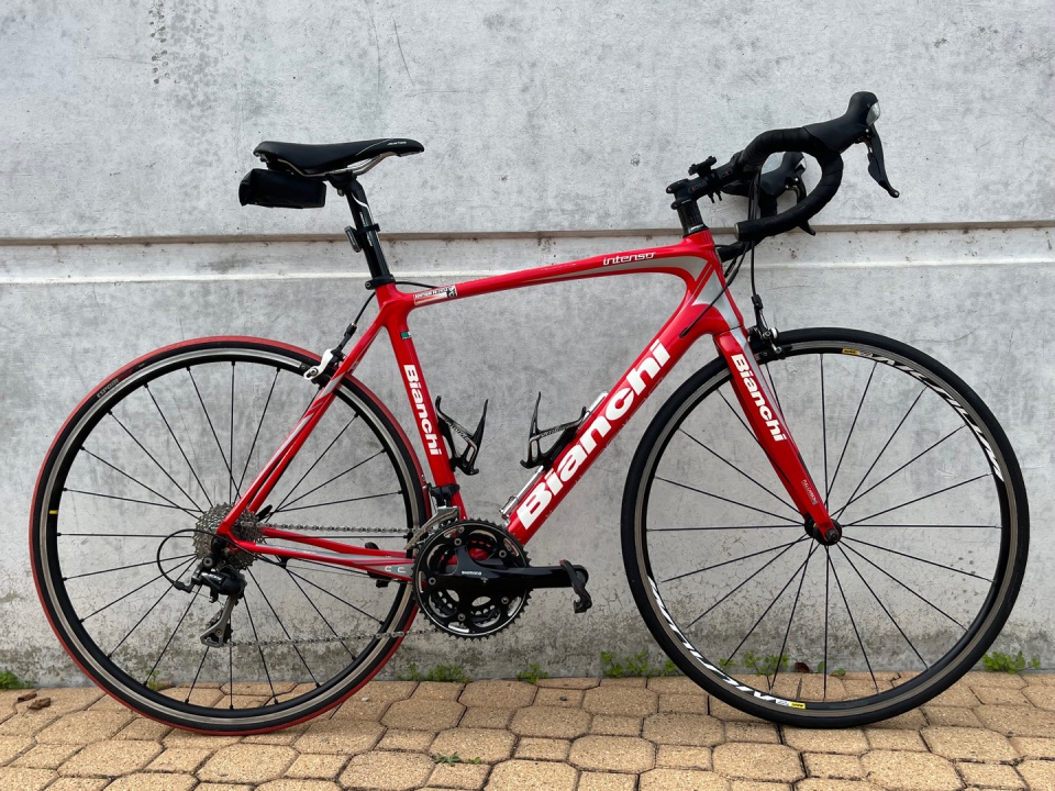 Vélo de course BIANCHI INTENSO carbone - Taille L 56 - 3x10 vitesses - État visuel: 8,5/10 - Vélo de course tout carbone très léger et fiable avec équipements Shimano 105. Idéal pour tous les dénivelés grâce à son triple plateau. Pour cyclistes à la recherche d'un vélo de course léger, polyvalent et réactif - Prix: 890€ (790€ avec les aides Toulouse Métropole) + 10€ marquage vélo