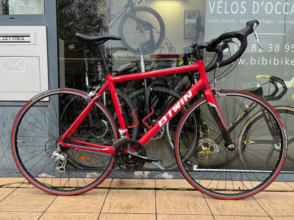 Vélo de course B'TWIN TRIBAN 3 - Taille L 57 - 3x8 vitesses - État visuel: 8/10 - Vélo de course, en très bon état. Vélo léger en aluminium avec fourche carbone équipements Shimano. Avec son triple plateau vous passerez partout. Vélo léger et réactif, idéal pour s'initier au vélo de course - Prix: 300€ (200€ avec les aides Toulouse Métropole) + 10€ marquage vélo