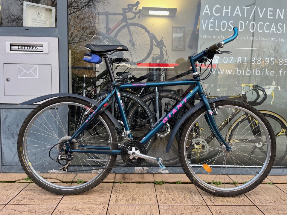 Vélo VTT GIANT GRANITE - TAILLE M (1m65 -1m75) - 3x7 vitesses - État visuel: 7,5/10. Vélo très solide et fiable. Equipements Shimano, garde-boues et béquille. Idéal pour tout type de terrains - Prix: 150€ (90€ avec les aides Toulouse Métropole) + 10€ marquage vélo